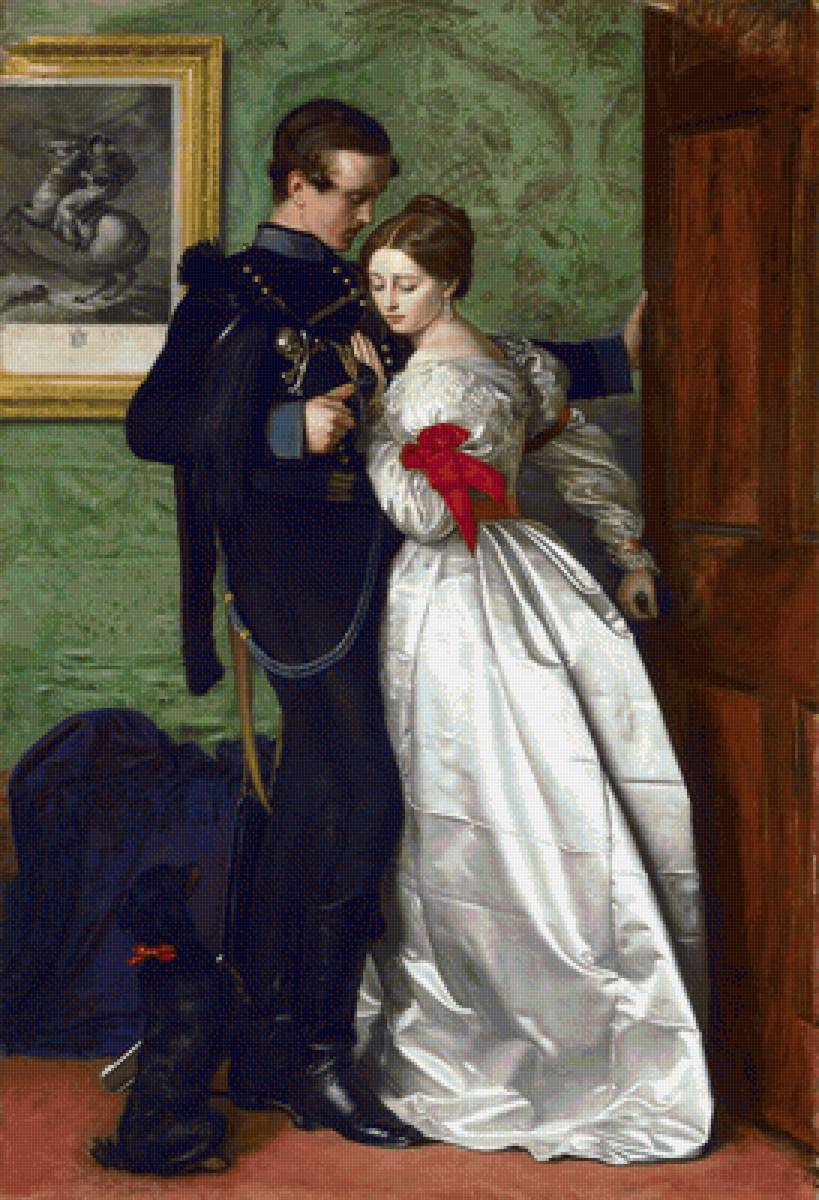 Cross stitch pattern: The Black Brunswicker by John Everett Millais