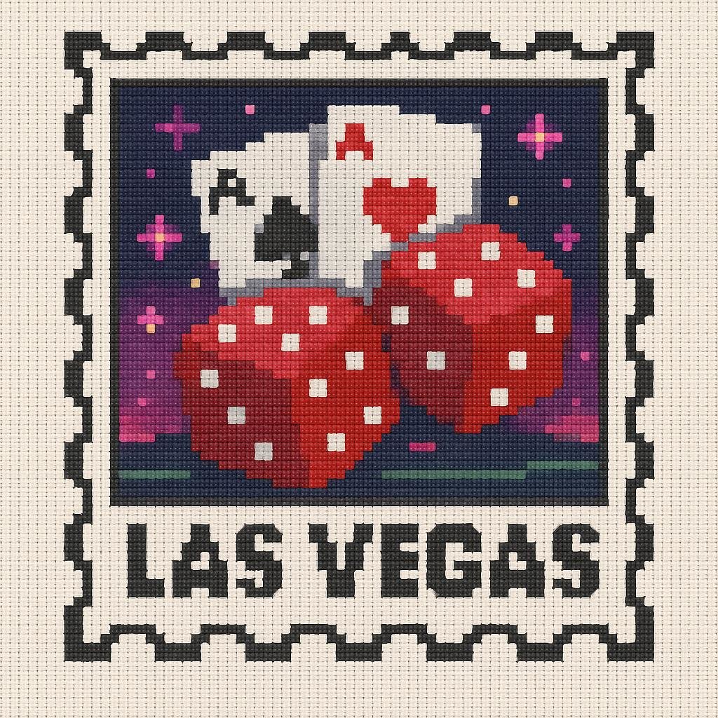 Cross stitch pattern: 100x100 stitches, DMC, 25 colors, Diffusion: 0% las vegas