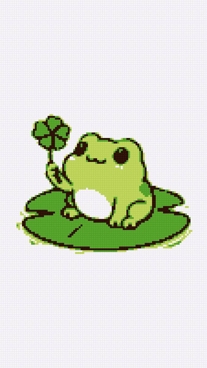 Cross stitch pattern: Frog with Clover